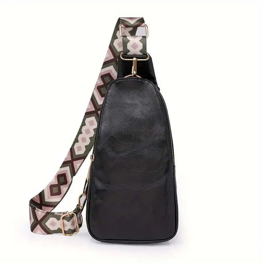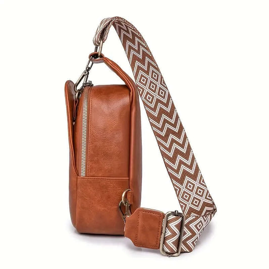 BohoVibe PU Leather Sling Bag with Wide Guitar Strap