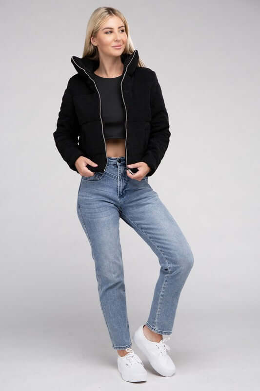 Ribbed Mock Neck Cropped Sweater & High Waist Pants Set