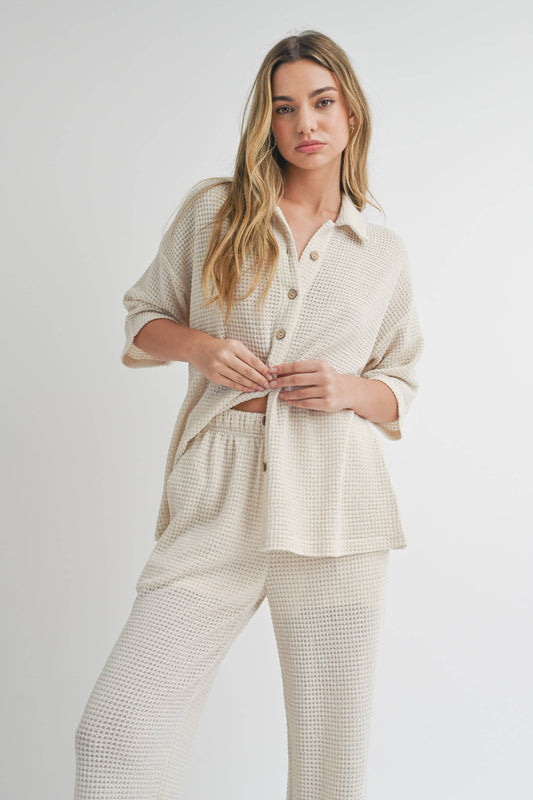 MIOU MUSE - T3420ST WAFFLED FABRIC BUTTONDOWN KNITTED SHIRTS