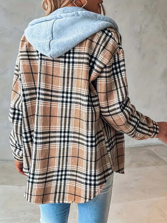 Classic Plaid Hooded Jacket: Vintage-Style Thermal Coat for Women