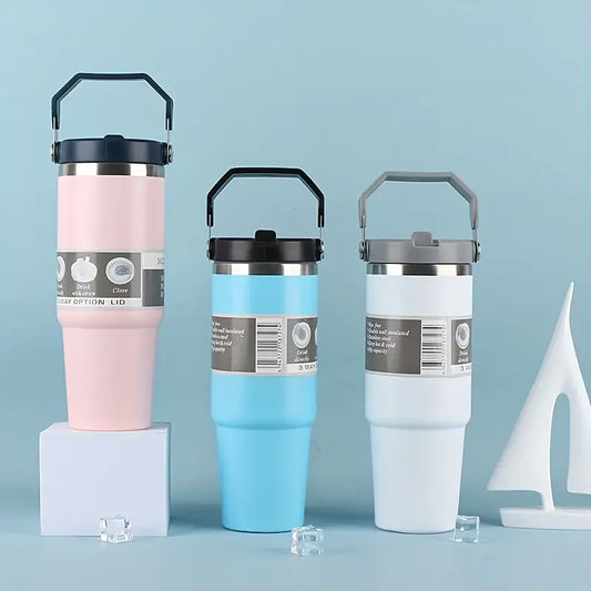 TravellerTumbler: 30oz Stainless Steel Outdoor & Travel Cup with Handle and Straw
