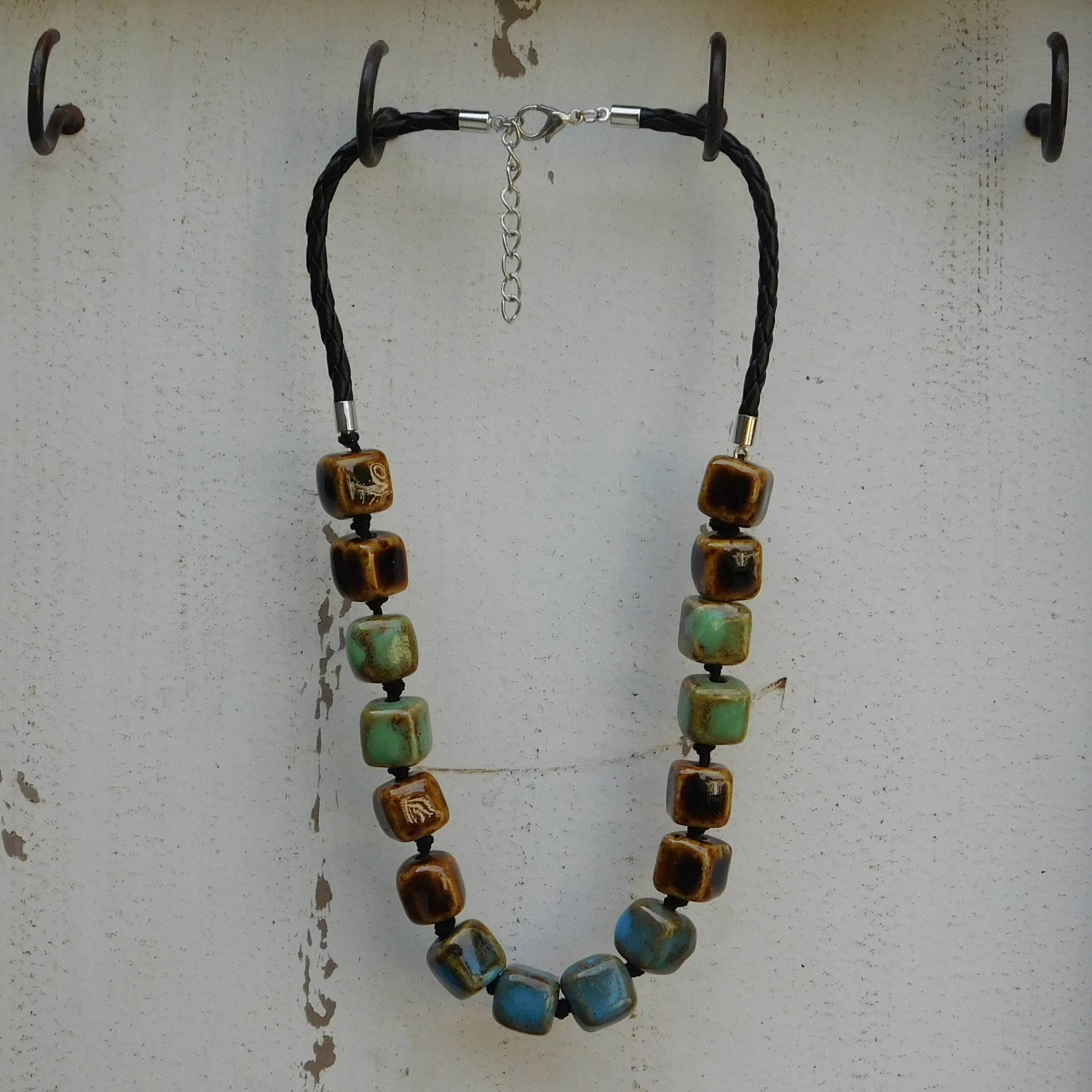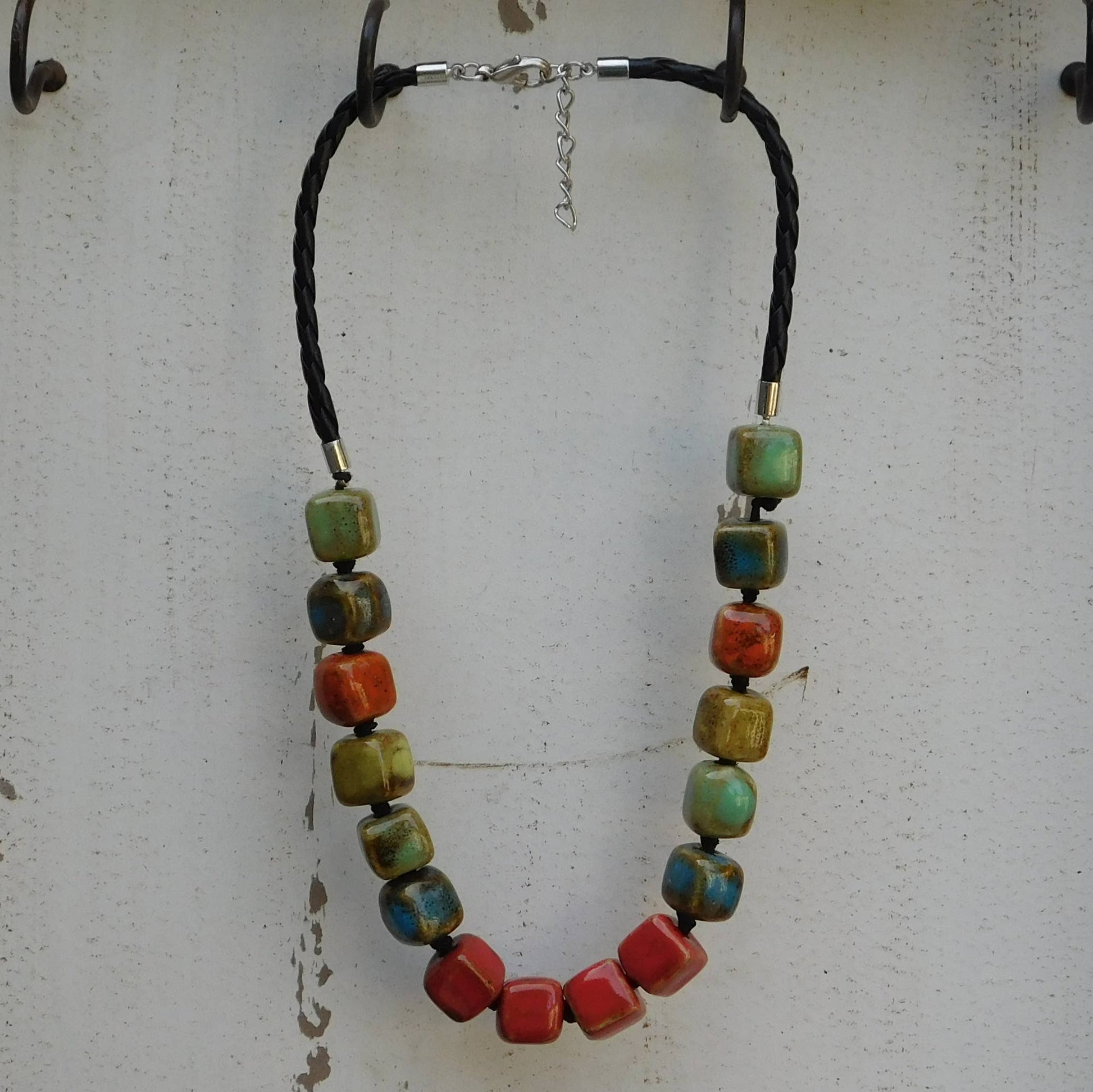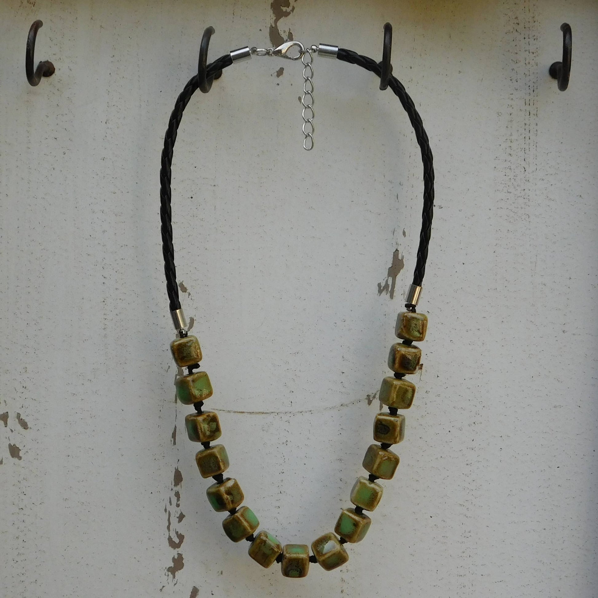 Elevate your accessory collection with the Clay Bead Short Necklace, featuring bold square-shaped clay beads paired with a chic faux leather cord. At 20 inches in length, this necklace sits just above the collarbone, offering a modern and stylish look. The combination of smooth clay beads and the edgy faux leather makes it a standout piece that adds texture and character to any outfit. Perfect for casual days or dressing up a more polished look, this necklace offers versatility and a touch of earth-inspired elegance.