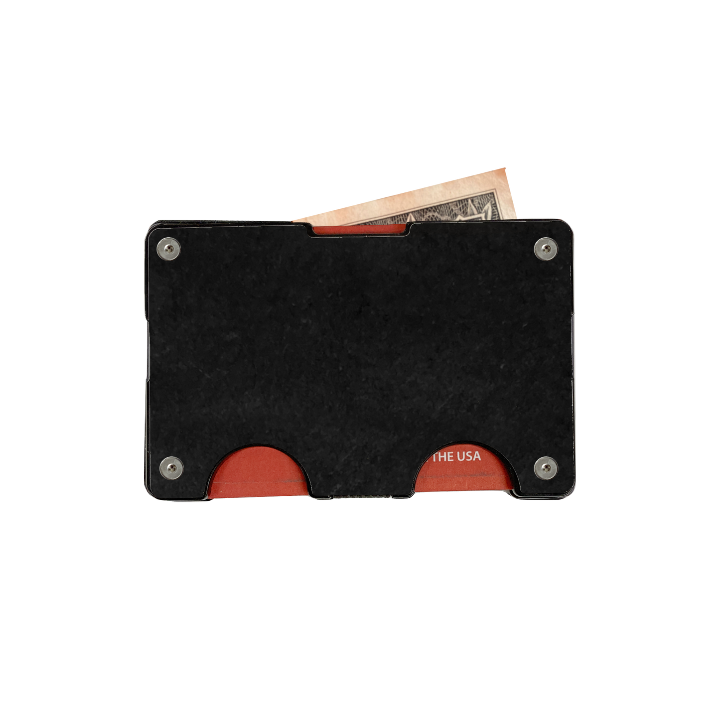 This metal wallet can stretch to hold 10+ cards and some folded cash. Hard shell wallets are all the rage, and this high-quality design delivers a phenomenal wallet at a great price. Our innovative Slide-Pop card fanning mechanism makes it easy to grab the card you need. (Push cards up using the finger holes, then pinch bottom to pop cards out into a fan.) Made from laser cut engineering plastics and aircraft-grade 6061 aluminum. RFID-blocking design prevents card skimming. MADE IN USA.